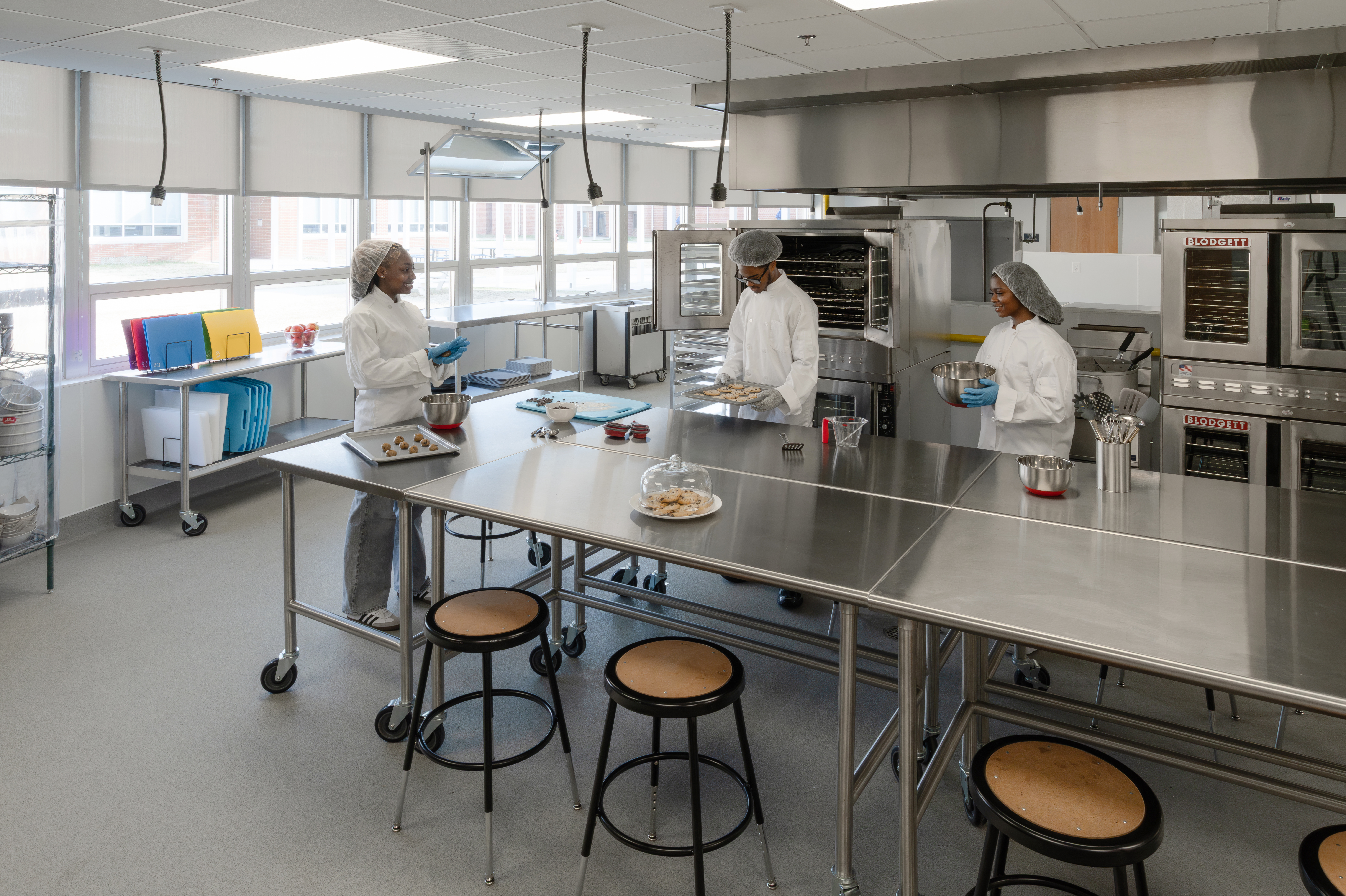 The cosmetology program enjoys a completely refreshed salon space. Nursing and dental labs were upgraded to elevate hands-on training. The culinary arts program features a state-of-the-art learning kitchen and a public-serving café called Cherry Tree Café. This café is shared with the hospitality program and gives students in both pathways the opportunity to practice real-world restaurant skills.